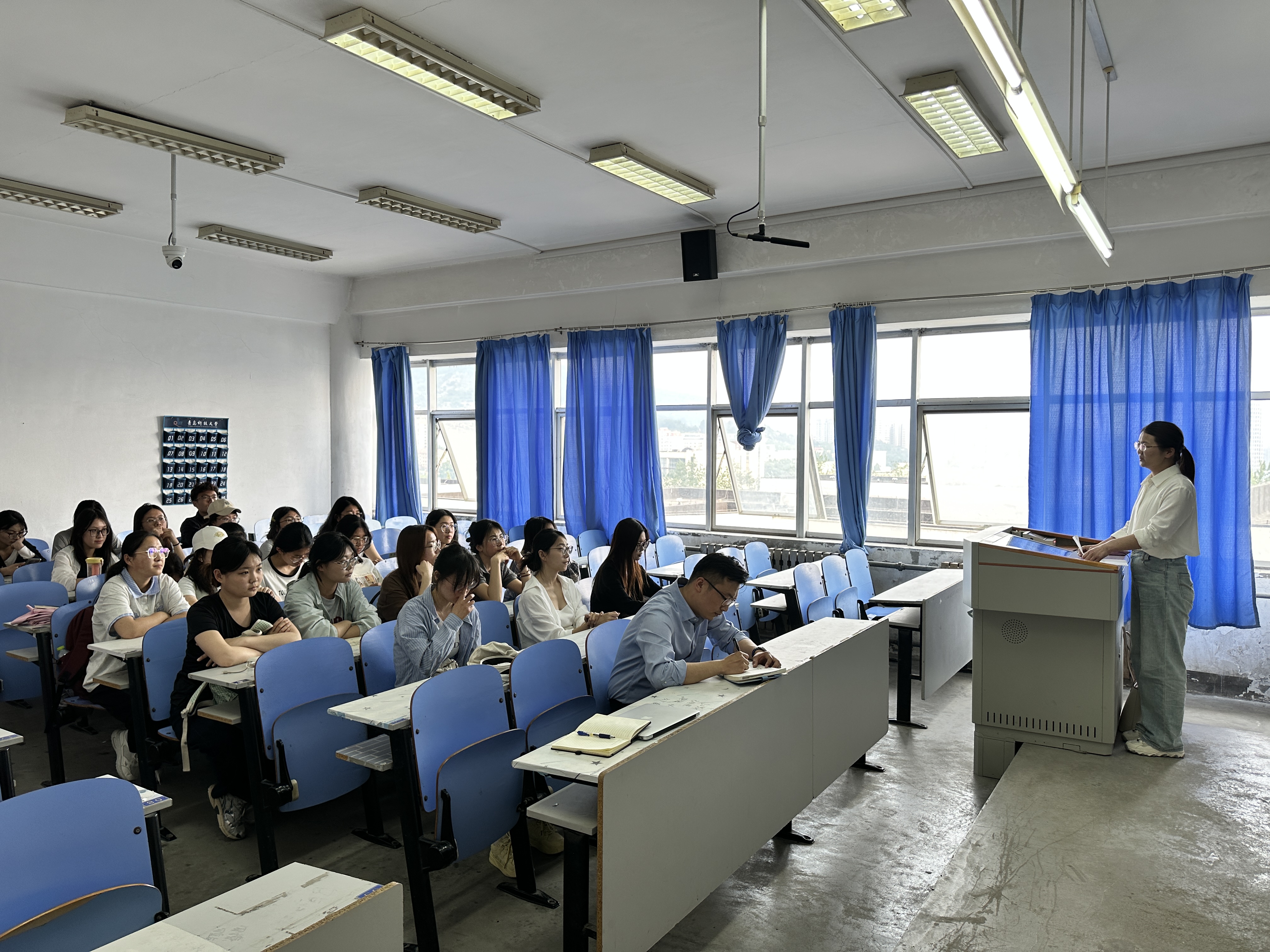 侯莹莹围绕锚定研究价值与学术创新、构建研究系统与理论支撑、贯通资料整合与学术表达和构建学术素养培育体系四个方面,深入讲解了翻译研究选题的原则,并以跨文化翻译、术语传播、翻译地理学等真实案例,详细阐释了如何从时代需求、学科交叉、材料积累等方面寻找研究突破口。同时,以生态翻译学的“十化”译法为例,系统讲解了理论运用中解释力、关联度和操作性的关联,针对论文发表、选题方向、研究路径等研究生普遍关心的问题,热情地回答了同学们的问题,给予了清晰的写作规划建议。