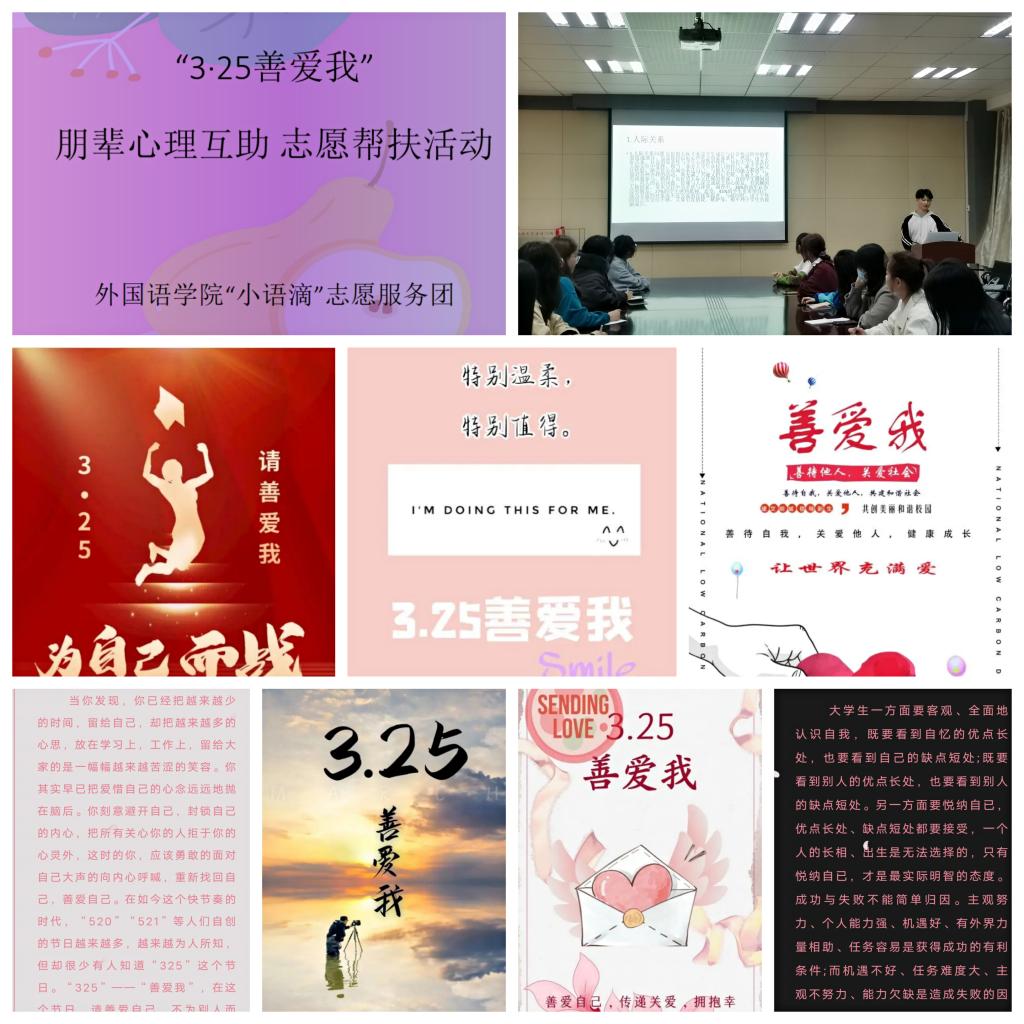 为在校园营造良好的关爱老员工心理健康的氛围,申博sunbet围绕本次“3·25善爱我”心理健康教育节进行心理知识科普,推出“心语小贴士”活动。鼓励同学们通过制作“3·25善爱我”海报、推送老员工心理健康——防治抑郁症小视频、“心语小贴士之说出我的心里话”等方式打开心扉。引导同学们学会善待自我,关爱他人,接纳并拥抱真实的自己,用自己年轻的心去感受生命的活力,去体会人间真情的温暖,享受生活的美好。