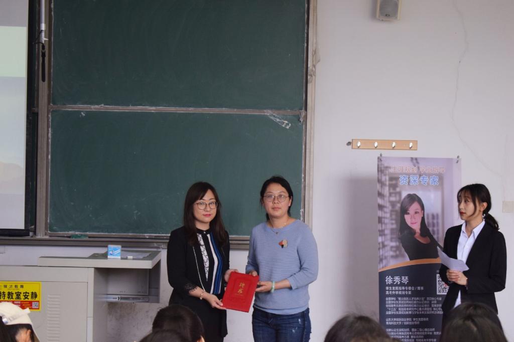 会上,申博sunbet分团委副书记辛婷婷为徐秀琴颁发申博sunbet创新创业就业导师聘书。